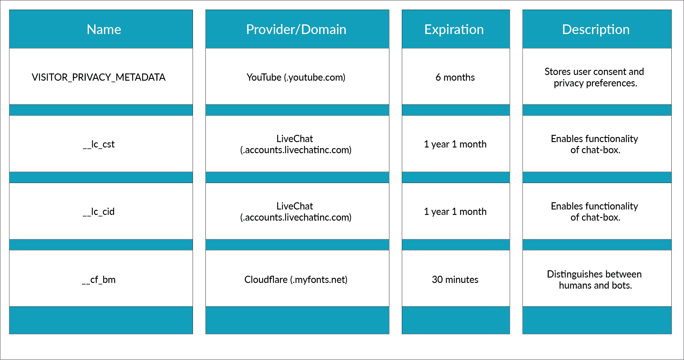 Performance cookies collect data about how visitors use a website — such as pages viewed, time spent, and navigation paths — to help site owners understand usage patterns and improve site functionality. The Performance cookies that we employ are: